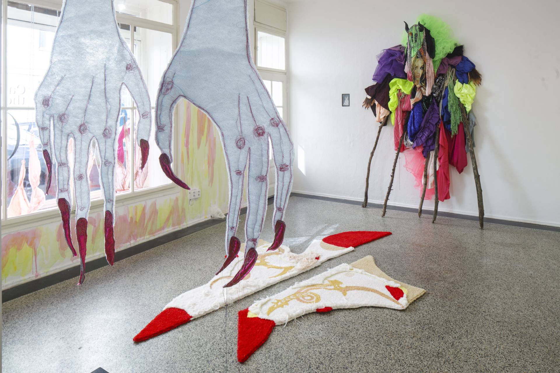 „Sousedky“ is both the Czech word for female plural neighbour and the exhibition title for the group show of four Düsseldorf and Cologne based artists: Janine Böckelmann, Sibylle Czichon, Antonia Freisburger, and Antonia Rodrian. They are neighbours in several ways: they live in neighbouring cities, they are founding members and co-curators in the off-spaces sonneundsolche and AURA Kunstraum, which are located on the same street, and above all they are fellow artists.